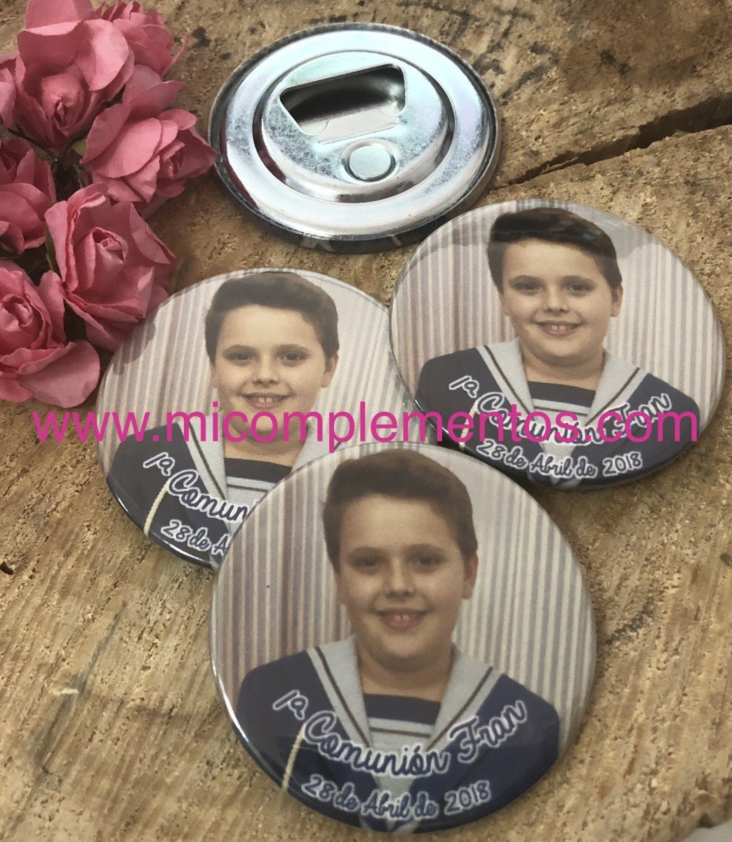 Los abridores imantado de 6 cm de diámetro son un regalo ideal para tus invitados a bodas, bautizos comuniones, despedidas…
