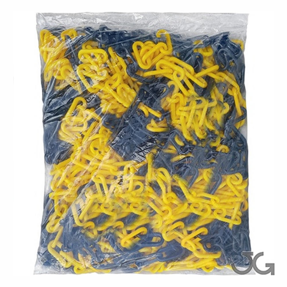 Cadena de señalización, fabricada en polietileno de alta densidad con protección a los rayos ultravioletas, de color amarillo y negro.