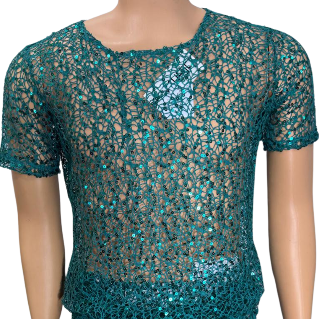 Camisa color verde con lentejuelas transparente