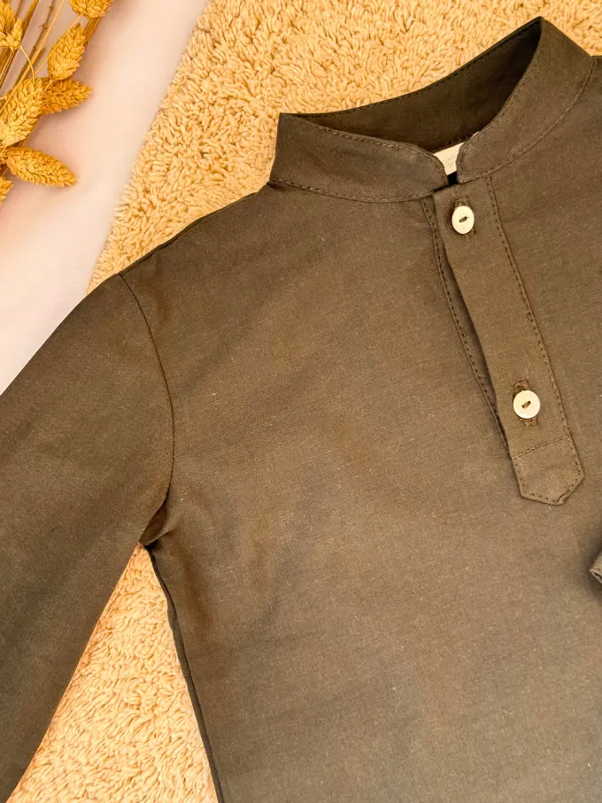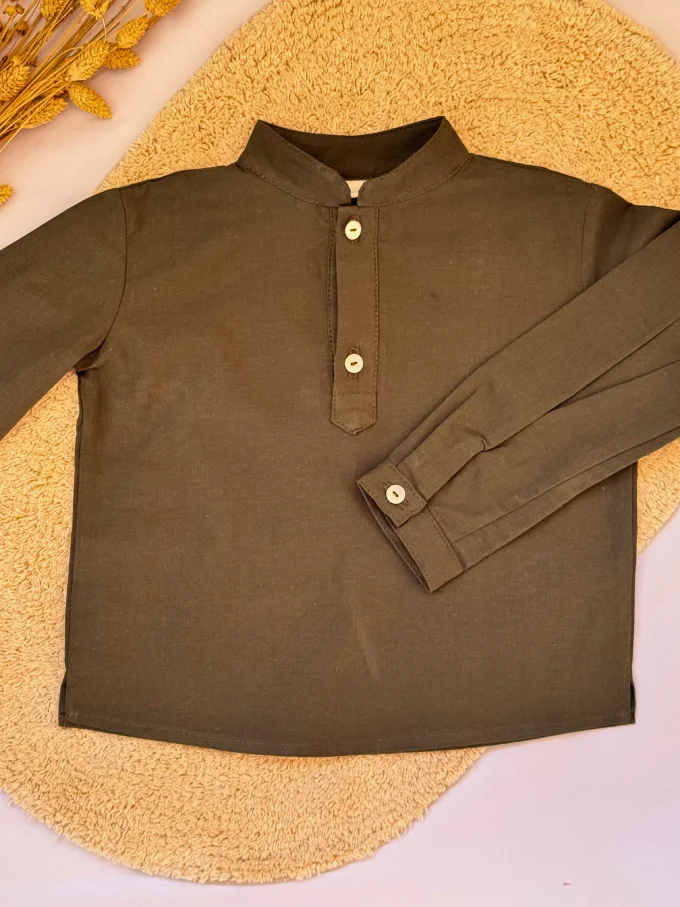 La camisa Abeto es una prenda esencial en el armario de los más pequeños. Confeccionada en algodón 100% suave y transpirable, ofrece una sensación de confort durante todo el día, cuidando la piel delicada de los niños. Su cuello mao y manga larga le dan un aire moderno y elegante, ideal para cualquier ocasión.