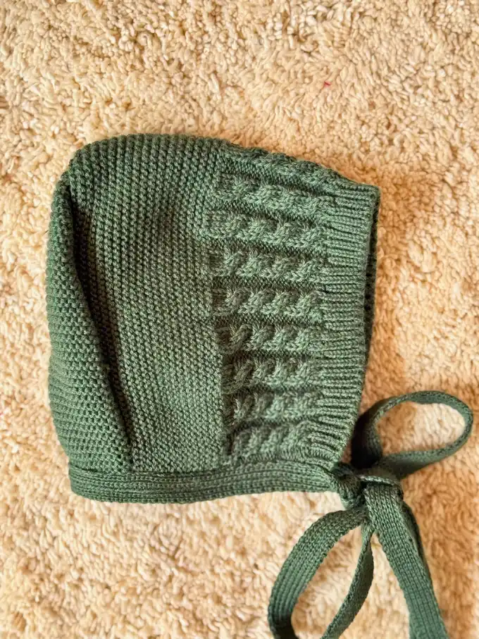 Capota de punto musgo en algodón verde pino – estilo y suavidad para tu bebé