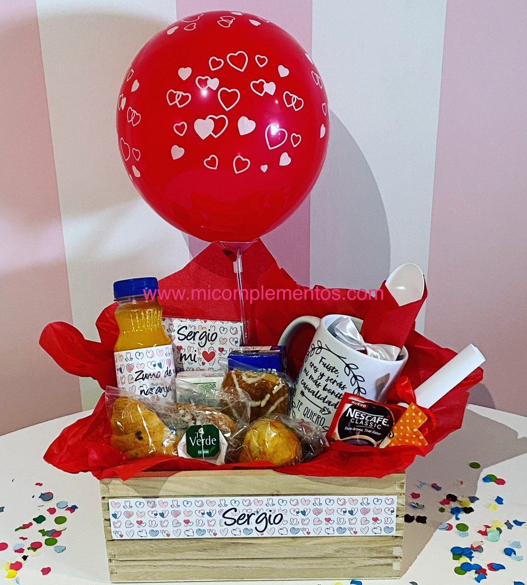 Cesta desayuno corazones