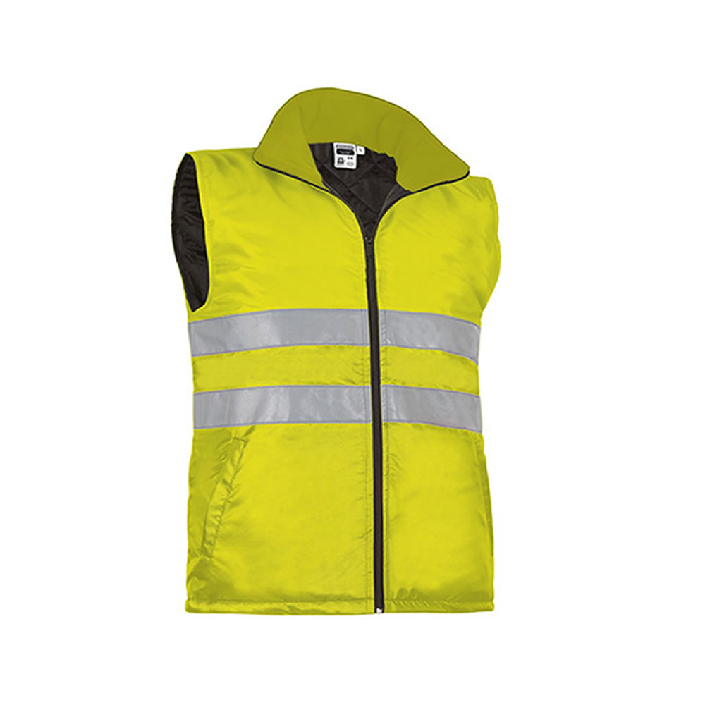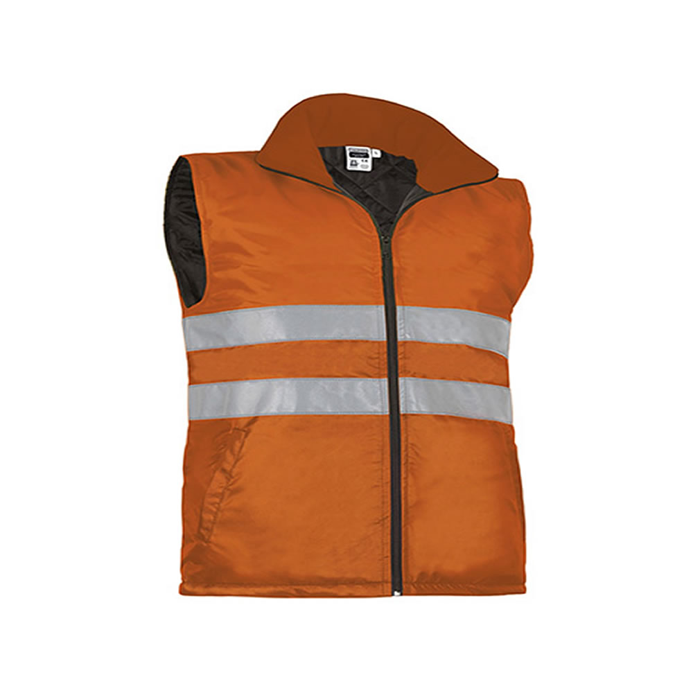 - Confeccionado en tejido canvas impermeable exterior, relleno acolchado y forro interior liso que aporta retención térmica, incluye dos cintas retrorreflectantes cosidas en torso y espalda que aumentan la visibilidad de los usuarios.