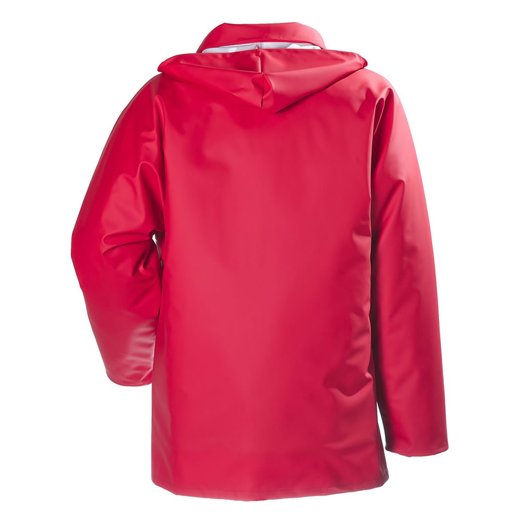 - Cuello con bolsillo y tres botones de presión para ocultar capucha.