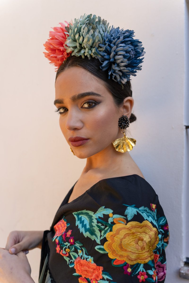 Crisantemo de flamenca, es una flor muy original y muy poco vista para flamenca, y es una de las estrellas de nuestra nueva colección 2025.