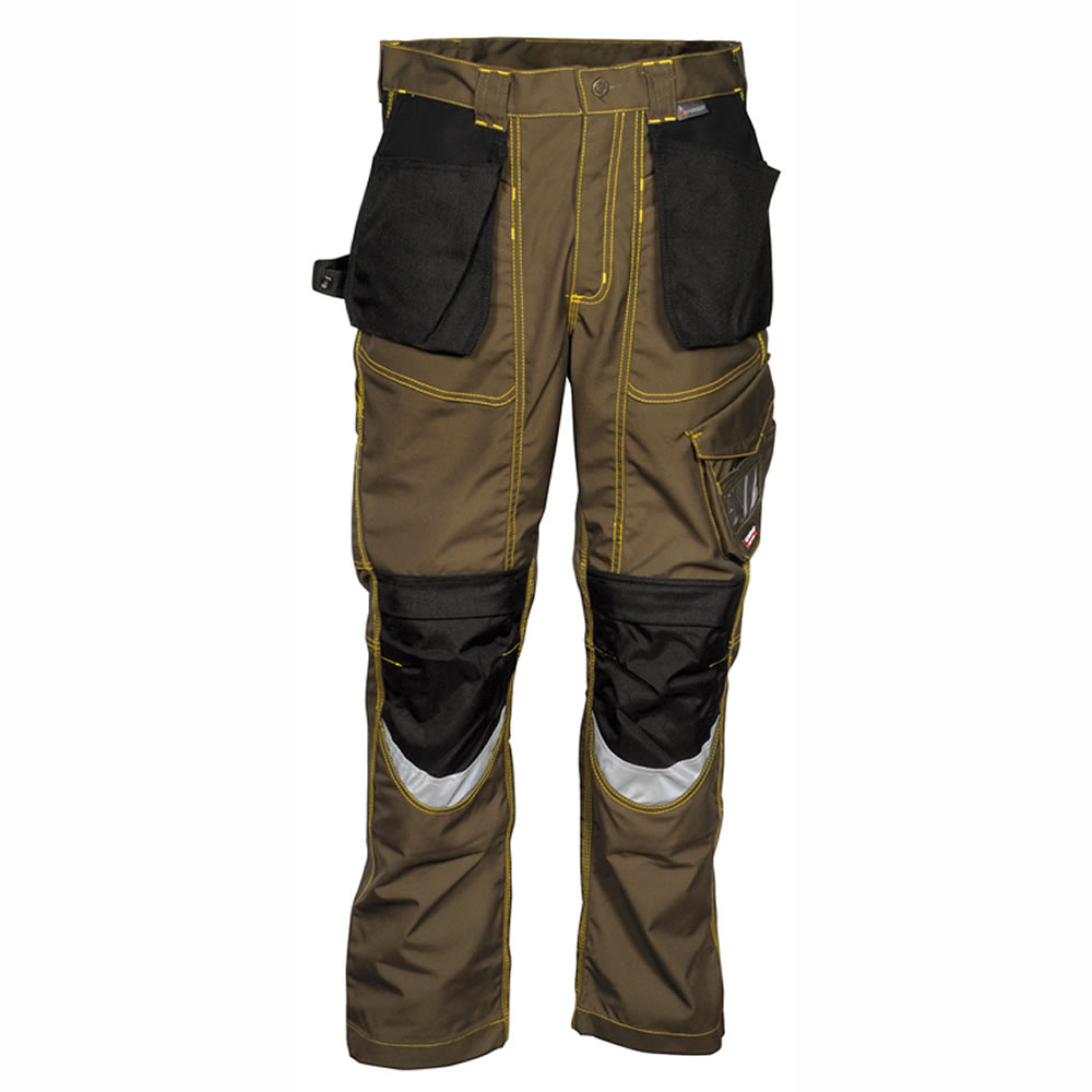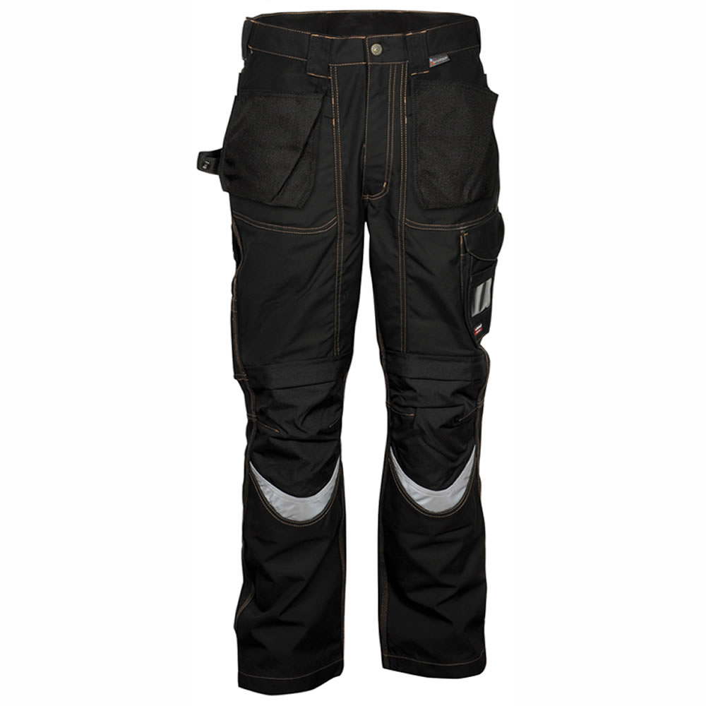 DESCRIPCIÓN: bolsillo porta metro, 4 amplios bolsillos delanteros, bolsillo lateral, bolsillo para rodilleras en nylon con posición ajustable, bolsillo porta tarjeta, bolsillos exteriores porta clavos de nylon, cintura ajustable, corte ergonómico de las piernas y rodillas, doble bolsillo trasero, uno con tapeta, insertos reflectantes, pasador portamartillo ajustable, tiro reforzado