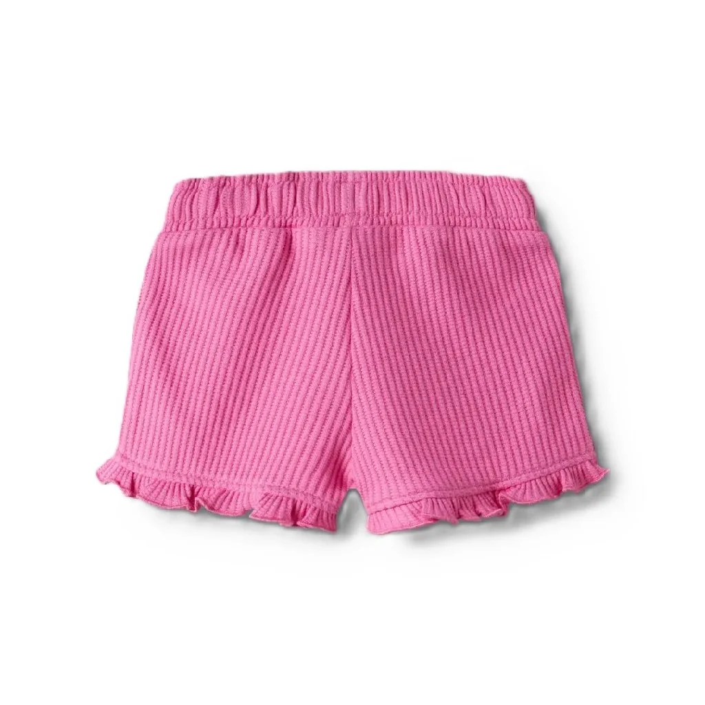 Pantalon corto bebe niña con volante bajo color rosa fucsia 4736