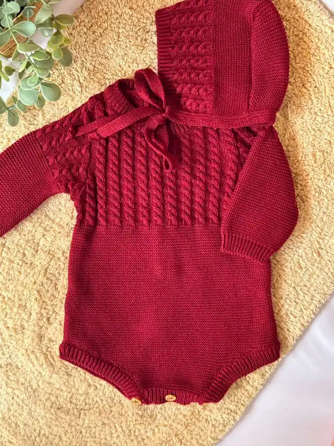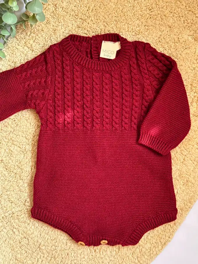 Este pelele de bebé en algodón burdeos es una elección perfecta para quienes buscan estilo, comodidad y calidad en una sola prenda. Ideal para regalar o para vestir con mimo a los más pequeños. 🌟