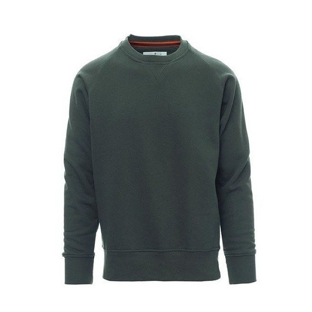 Sudadera con cuello redondo para hombre, mangas ranglán, pespunte en cuello de pico. Puños y dobladillo elásticos, costuras reforzadas.